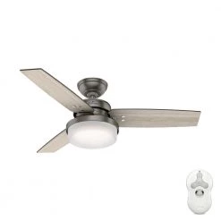 With clean lines and classic finishes, the Sentinel ceiling fan with light has a casual, transitional design that pairs well with a myriad of home styles, from soft modern to farmhouse. Use the included handheld remote to adjust this modern ceiling fan’s 3-speed WhisperWind motor and dimmable LED light bulbs. The 44 in. blades make this small ceiling fan the perfect fit in home offices, bedrooms and laundry rooms. Shop the Sentinel Collection’s various finishes and sizes to easily create a cohesive look throughout your home.