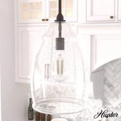 Dunshire 1-Light Noble Bronze Island Mini-Pendant Light with Clear Seeded Bell Glass Shade by Hunter