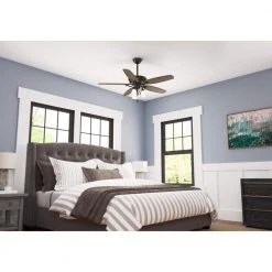 Overton 60 in. LED Indoor/Outdoor Matte Nickel Ceiling Fan with Light Kit and Wall Control by Hunter