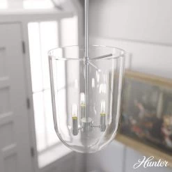 Sacha 4 Light Brushed Nickel Island Pendant Light with Clear Glass Shade Dining Room Light by Hunter