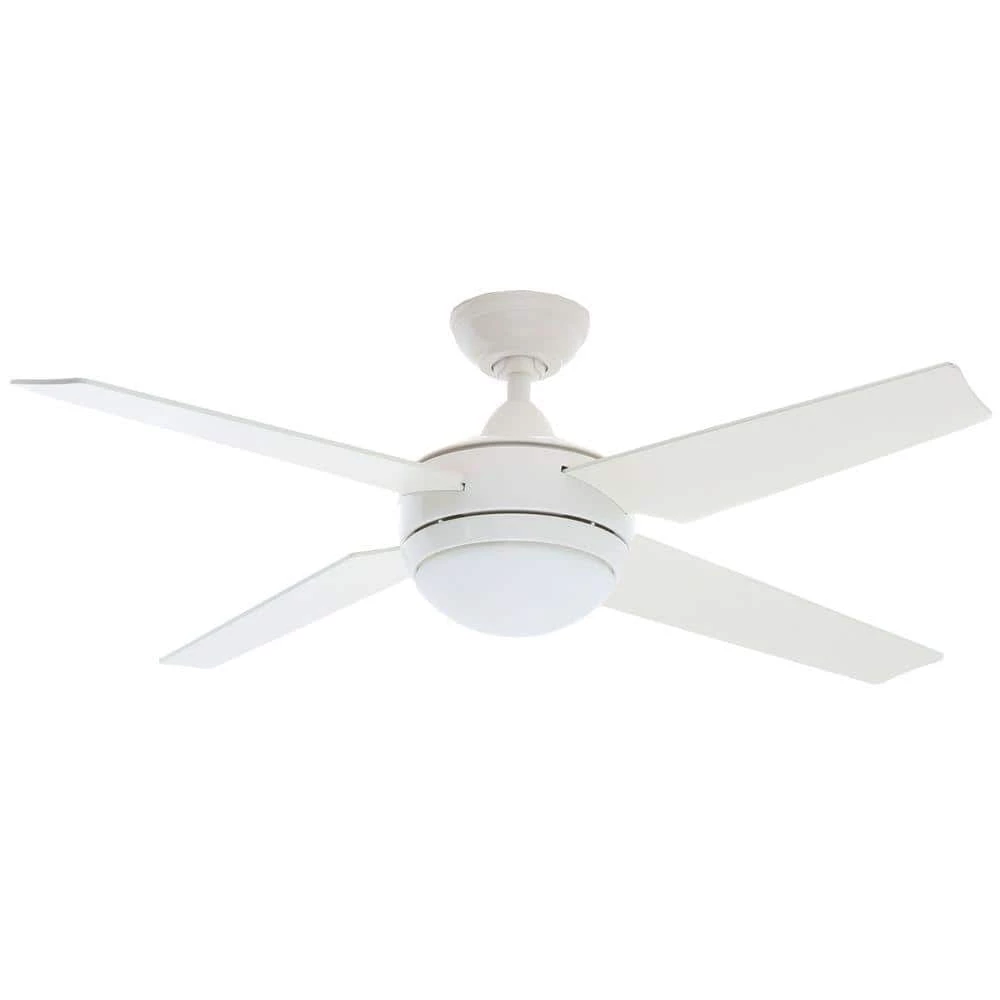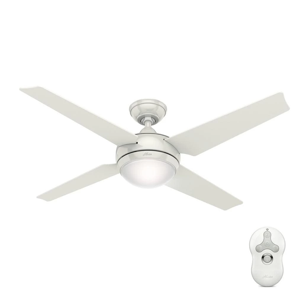 The smooth, relaxed lines of the 52 in. Sonic fan are at home in virtually any room in your house. Featuring a sleek and sophisticated White finish and four reversible White / Maple blades, this Hunter ceiling fan is a great addition to larger rooms. It’s powered by an ultra-efficient WhisperWind motor and includes an integrated compact fluorescent light fixture to illuminate your space. It also comes equipped with a remote control for easy operation from the palm of your hand.