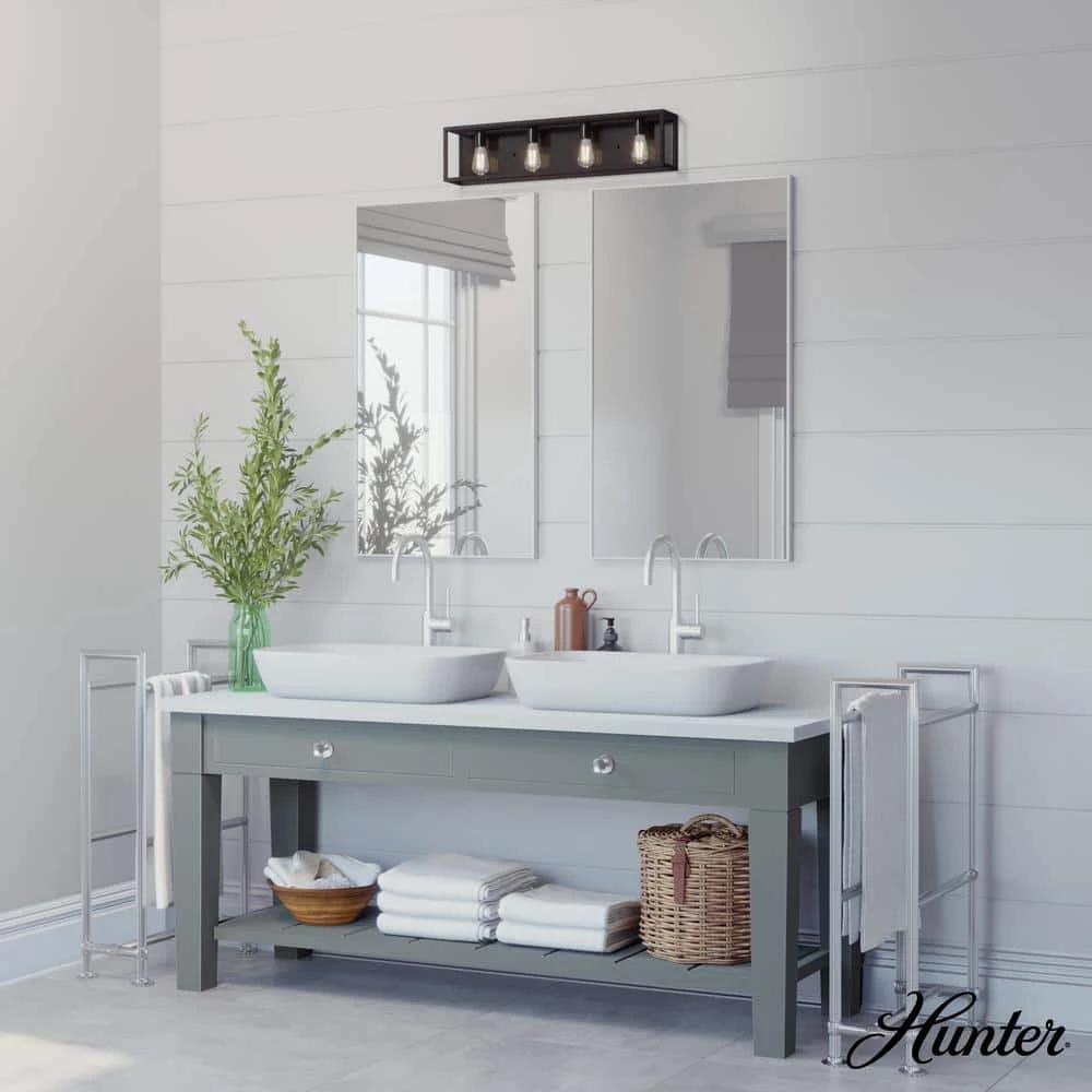 Start fresh with the Squire Manor 4-light vanity. The open minimalist farmhouse design allows the light to fill your bathroom mirror to make your day brighter. The simple form and subtle detailing of the Squire Manor collection feels at home in any setting.