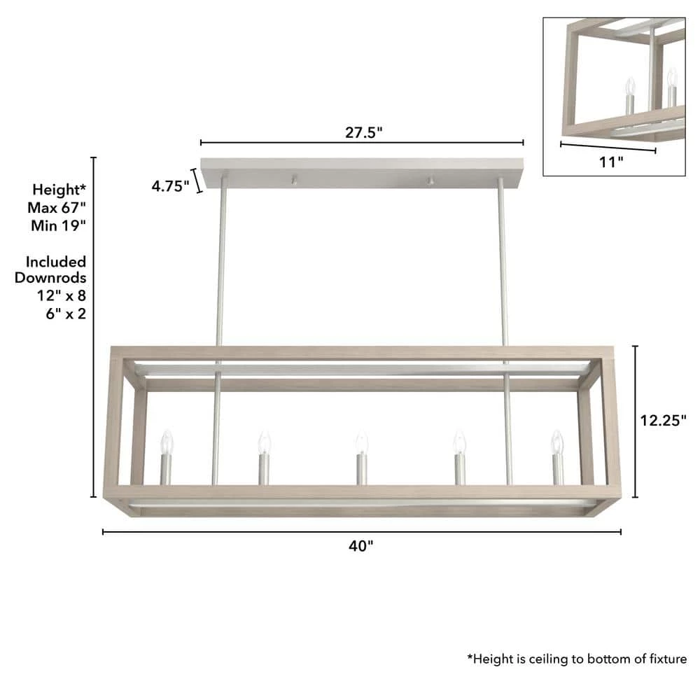 - FLEXIBLE HANGING: one 6-inch and four 12-inch downrods allow hanging length adjustments from 19 inches to 67 inches, wiring can be cut to match