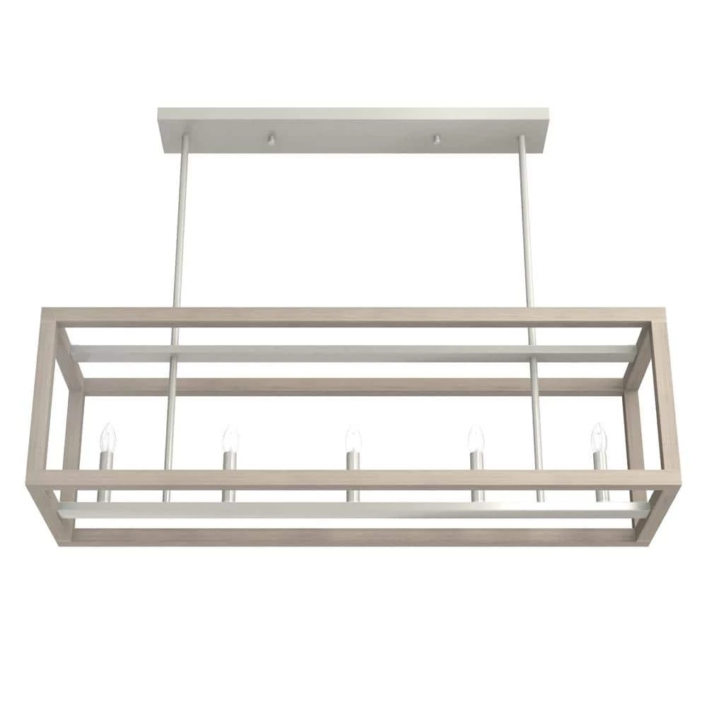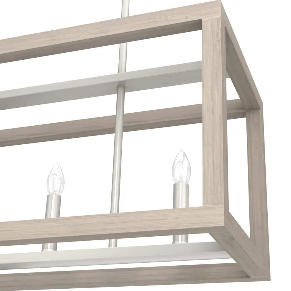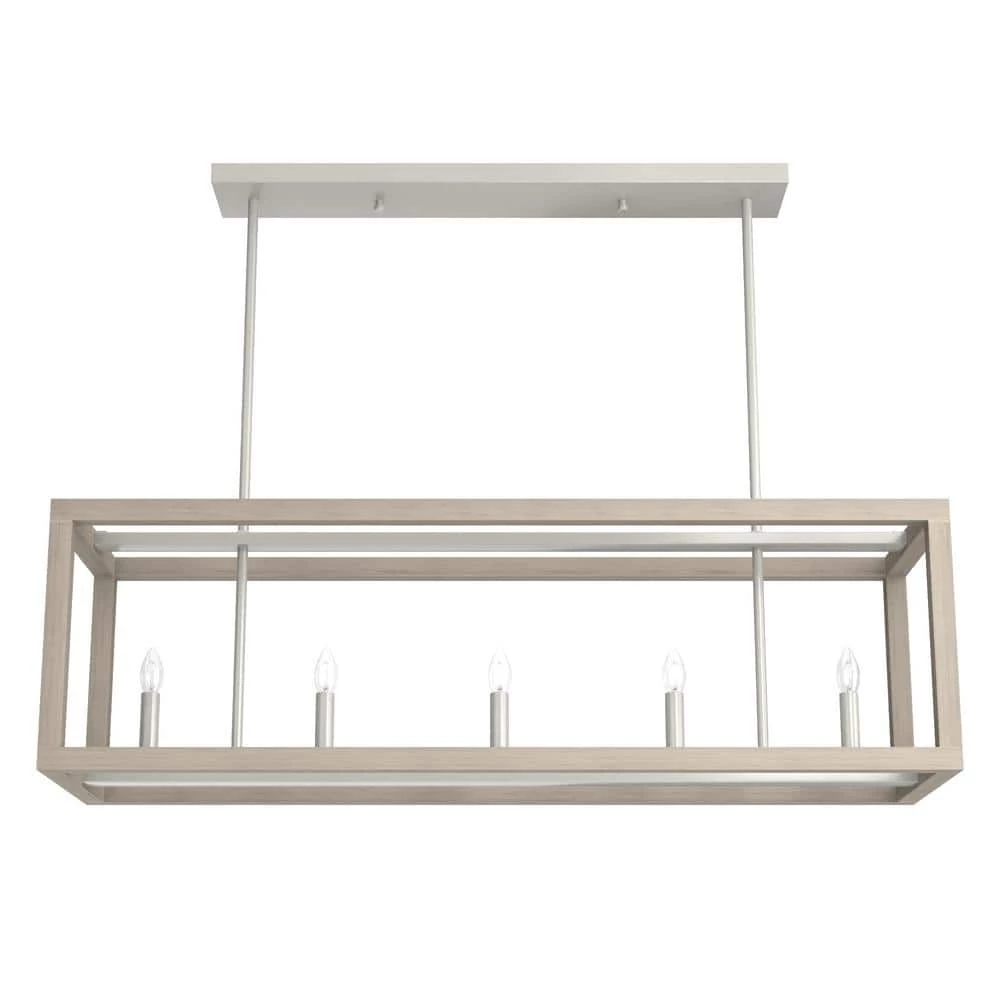 The openness of the Squire Manor linear chandelier coupled with the clean lines and wood inspired texture gives it an airy and warm aesthetic. With a simple form and subtle wood grain detailing, this lantern-inspired light feels at home in any setting, from farmhouse to Mid-Century modern. A light and airy design.