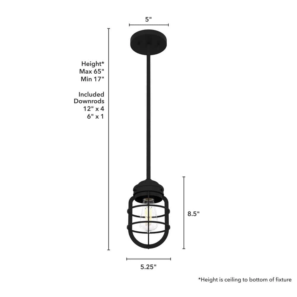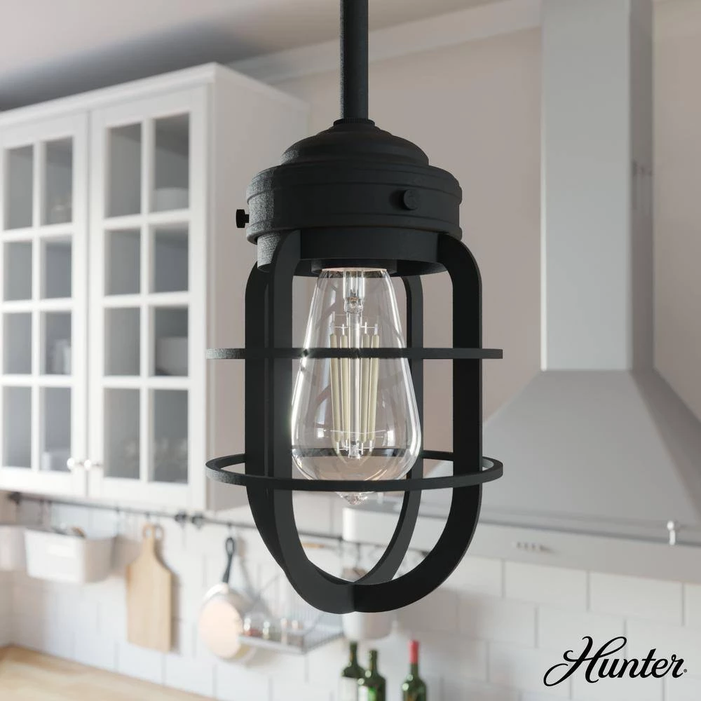 A rustic mini-pendant light with a caged design like the Starklake emphasizes modern industrial and farmhouse style spaces. The Starklake 1-light mini-pendant light complements the style of the Starklake ceiling fan collection, giving your space a cohesive look. Use ST64-shaped bulbs to match the image.