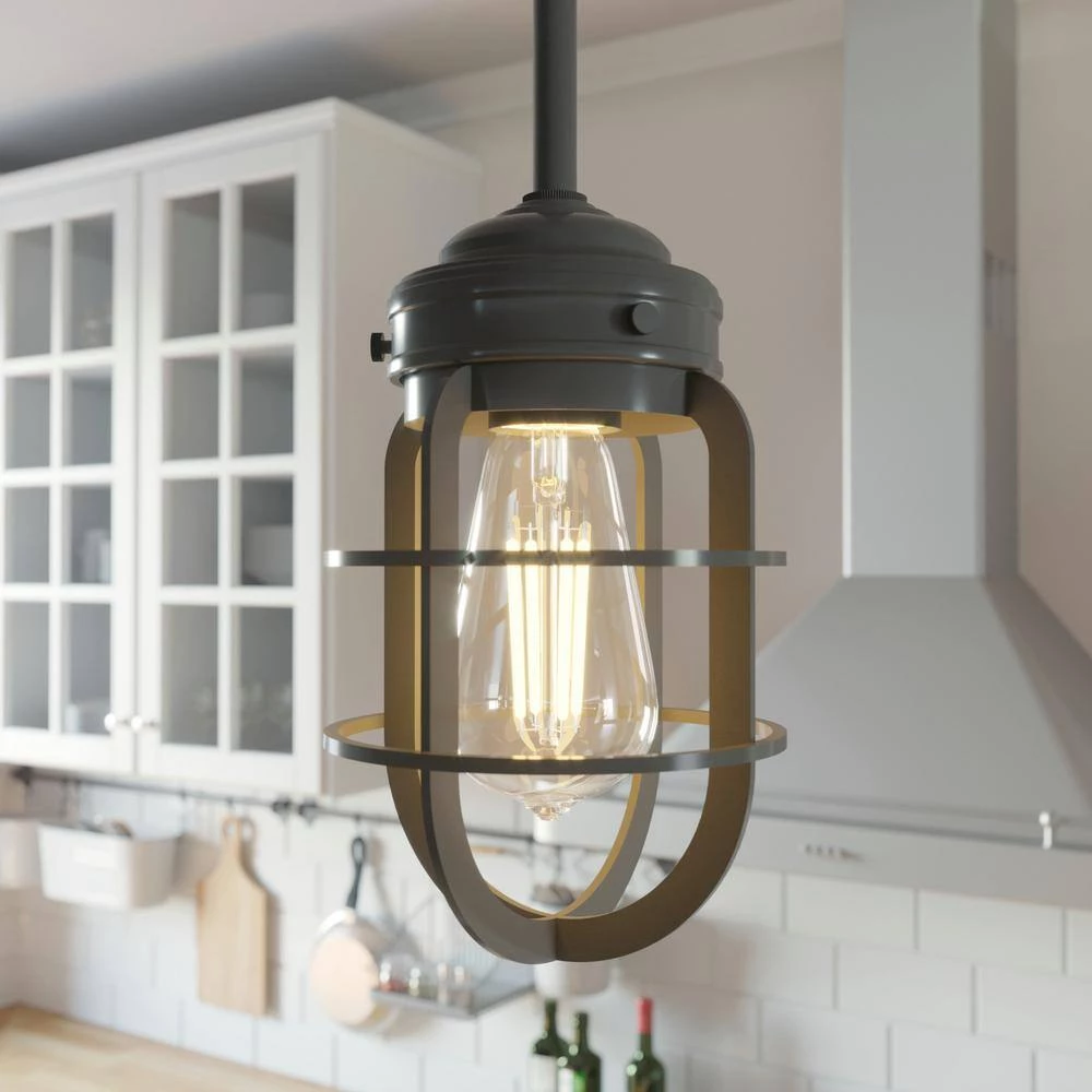 A rustic mini-pendant light with a caged design like the Starklake emphasizes modern industrial and farmhouse style spaces. The Starklake 1 -Light Mini Pendant light complements the style of the Starklake ceiling fan collection, giving your space a cohesive look. This light is a casual transitional style.
