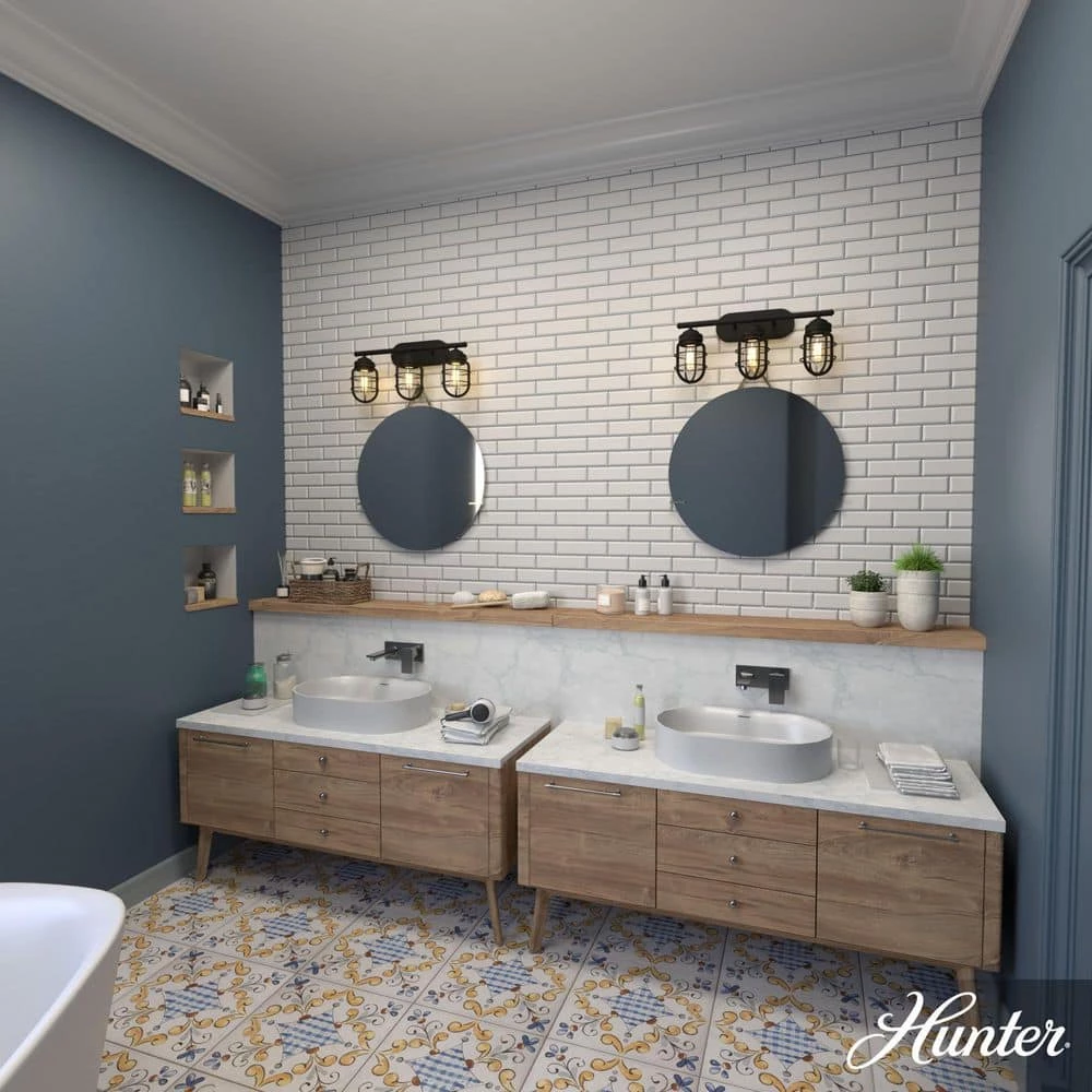 Turn-of-the-century inspiration with modern influences. The Starklake 3-light vanity light with caged shades stands out in modern industrial and farmhouse style bathrooms. Balancing industrial detailing with timeless design, the warehouse-inspired caged light elevates your space.