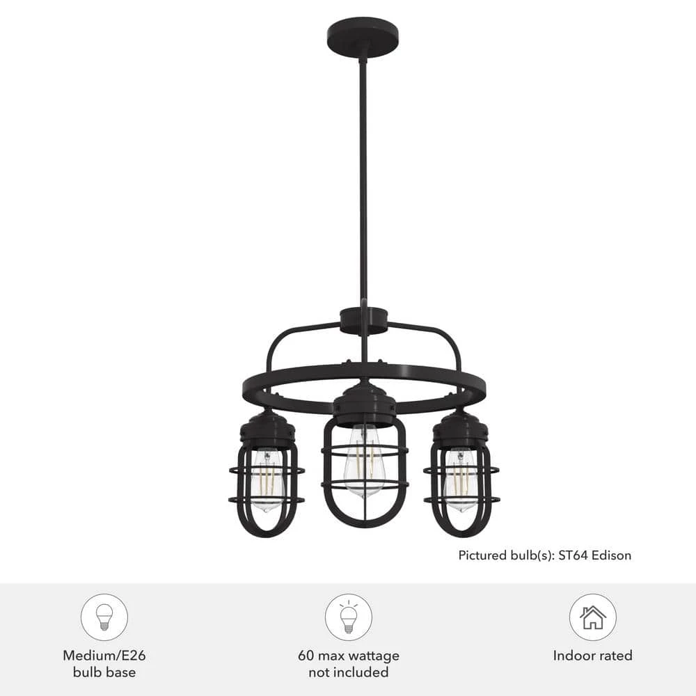 - Required bulbs: uses three E26-base light bulbs, ST64 edison recommended, each at 60-Watt maximum or the LED equivalent (bulbs not included)