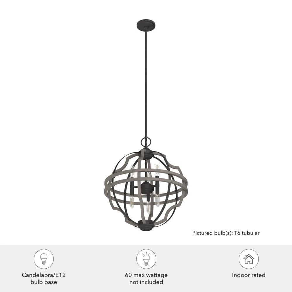 - REQUIRED BULBS: uses six E12-base light bulb(s), each at 60-Watts maximum or the LED equivalent (bulbs not included)