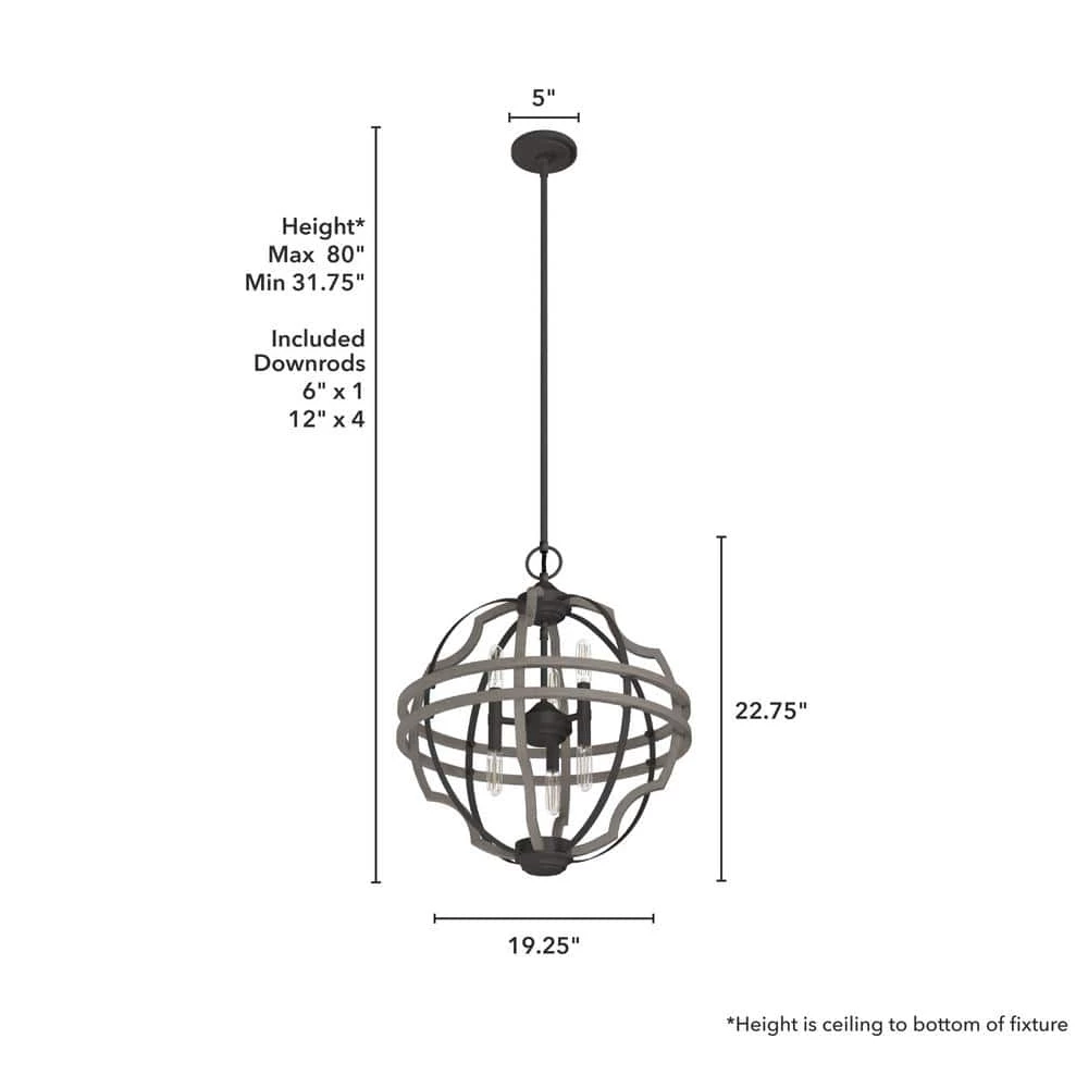 - FLEXIBLE HANGING: one 6-inch and four 12-inch downrods allow hanging length adjustments from 31.75 inches to 80 inches, wiring can be cut to match; compatible with sloped ceilings