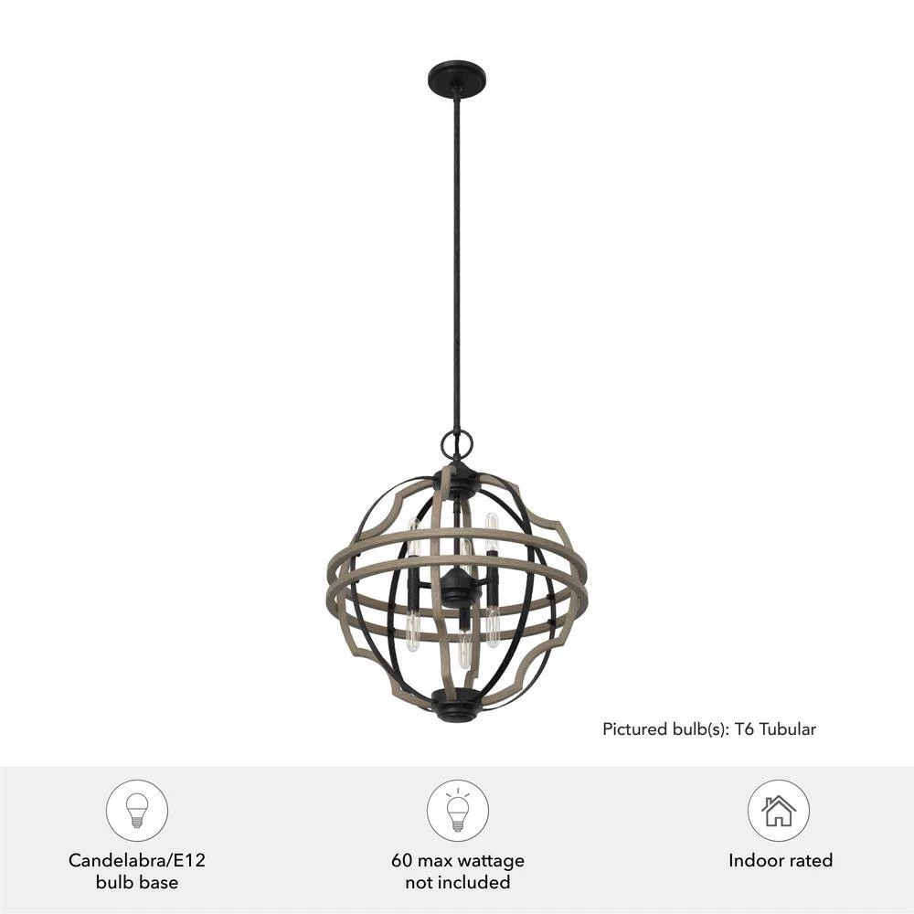 - REQUIRED BULBS: uses six E12-base light bulb(s), each at 60-Watts maximum or the LED equivalent (bulbs not included)