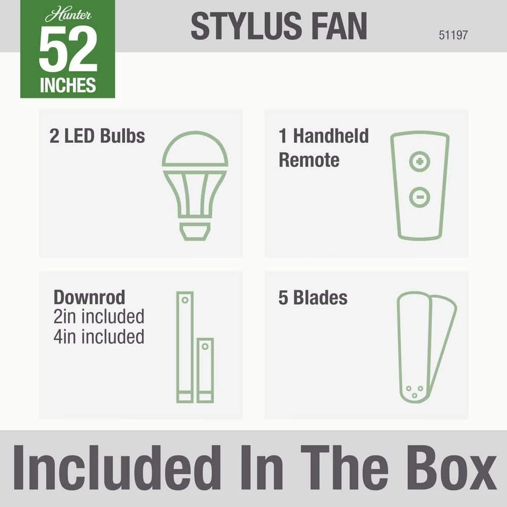 A smart fan with powerful performance. The Stylus modern ceiling fan is built with our SIMPLEconnect Wi-Fi capabilities to easily connect with your other smart devices. This fan delivers the style you want and the optimized, cooling performance you expect from Hunter’s SureSpeed Guarantee.