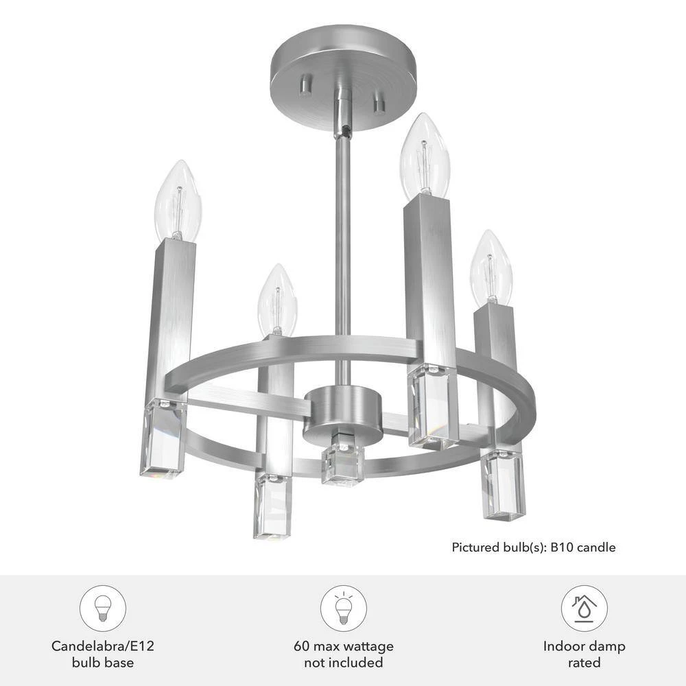 - Required bulbs: uses four E12-base light bulbs, B10 candle recommended, each at 60-Watt maximum or the LED equivalent (bulbs not included)
