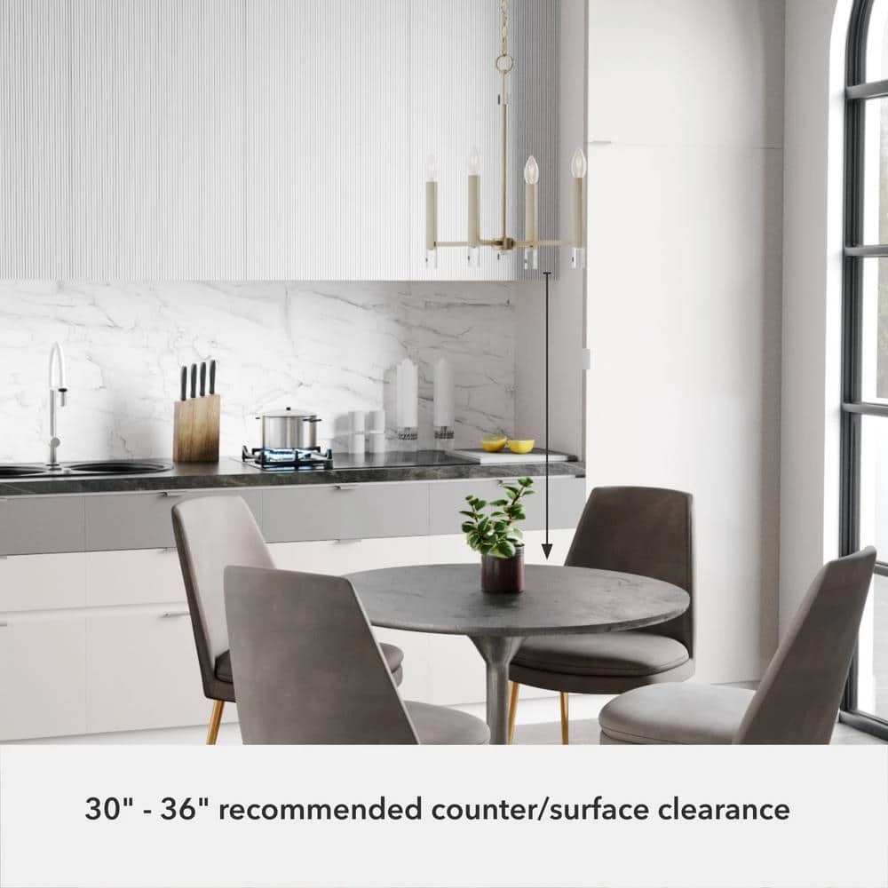 Elevate your space and style with the Sunjai. The versatile Sunjai 4-light fixture combines the classic beauty of a petite candelabra with modern glam. You can also convert it to a semi-flush mount to suit your space. This fixture is an elegant addition to your kitchen, dining room or breakfast nook. Dine in the light of the Sunjai Pendant.