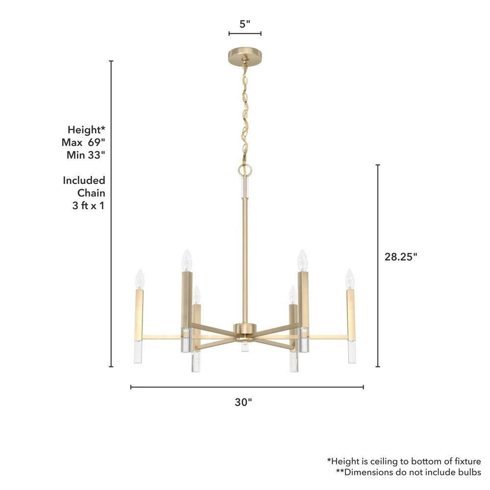 Your guests will be drawn to the beauty of the Sunjai 6-light chandelier. The perfect modern accent to your home’s living or dining room, your guests will be entertained by your style. Pairing the modern simplicity with elegant design and chic sparkling accents, the Sunjai chandelier is a wonderful way to light up your living space without overwhelming your home’s existing decor. Upgrade your aesthetic with the Sunjai.