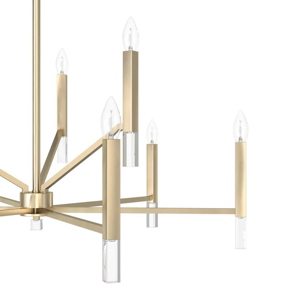 Uplift your home’s lighting aesthetic with the Sunjai 2-tier chandelier, featuring 9 individual lights that evoke the classic glow of a candelabra, with a modern edge. The Sunjai’s casual geometry is offset by elegant shimmering adornments at the base of each light and the fixture’s overarching clean, modern design, adding a touch of glam to. Brighten up gatherings with the Sunjai 2-tier chandelier.