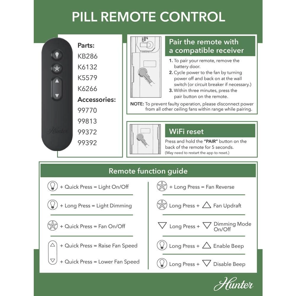 - If pairing just the remote to a Hunter receiver in an existing ceiling fan, please refer to the owner’s manual and video for pairing instructions