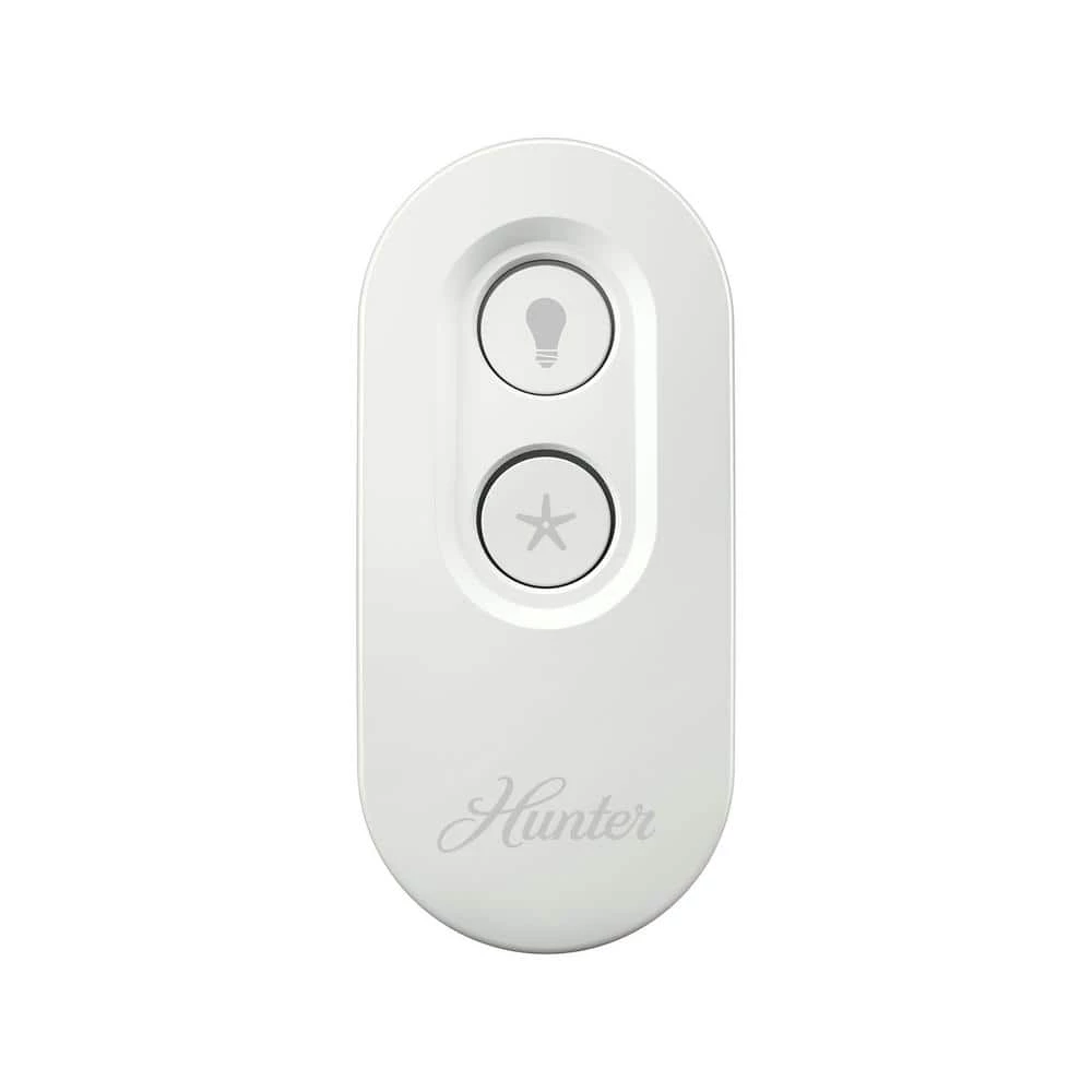Hunter’s universal on/off remote control works on all Hunter ceiling fans as well as many other brands. Easily install the included remote receiver into the indoor or covered outdoor ceiling fan’s canopy and the handheld remote is paired for easy, out-of-the-box use. It’s a simple solution for controlling your ceiling fan and fan light.