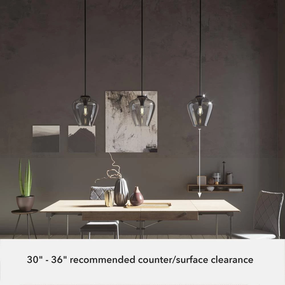 - PREMIUM DESIGN: a formal modern design with attractive matte black finish and premium smoked glass shading perfect for illuminating kitchens, living rooms, foyers, nooks, and dining areas