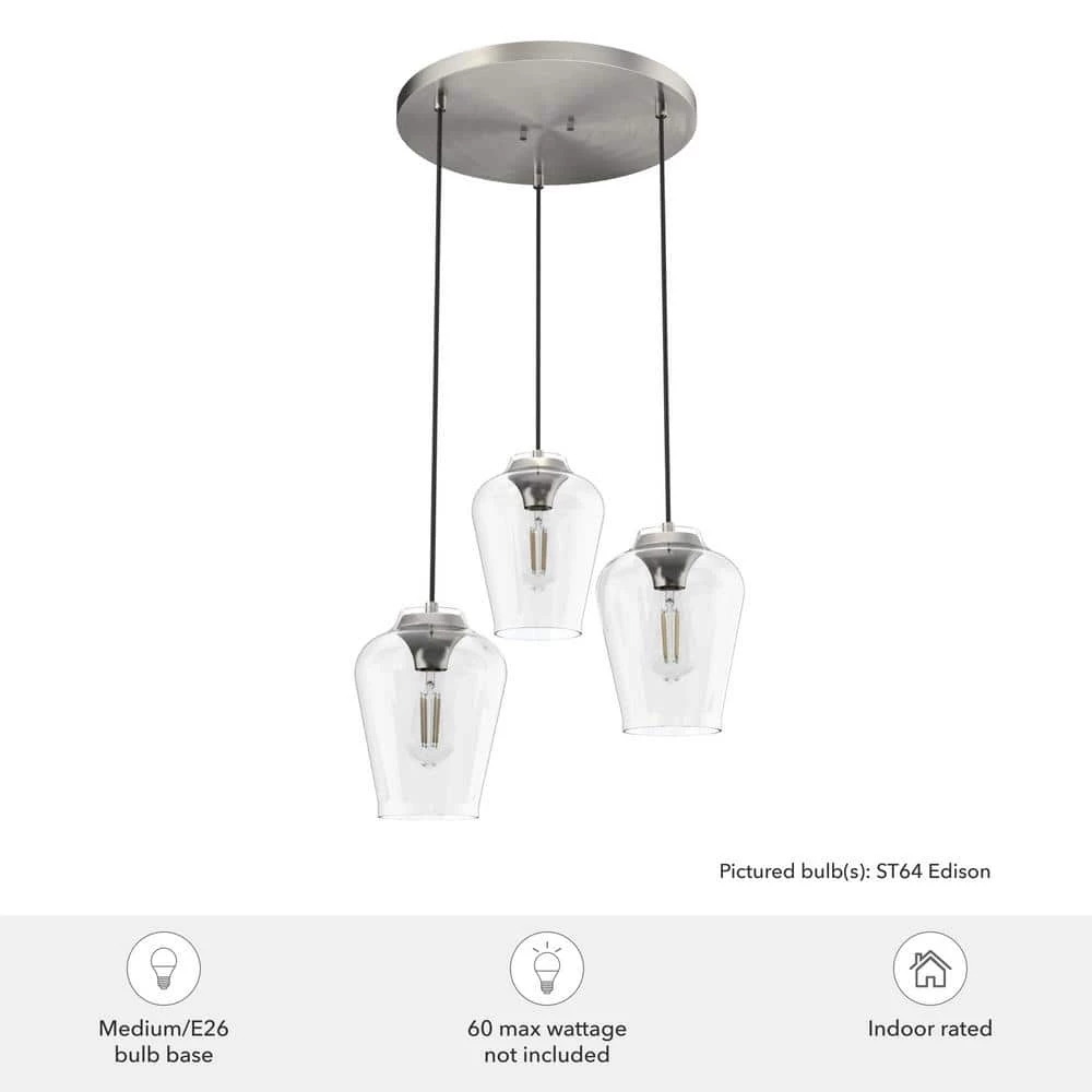 - Required bulbs: uses three E26-base light bulb(s), each at 60-Watt maximum or the LED equivalent (bulbs not included)