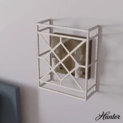 Saddle Creek 1-Light Brushed Nickel Wall Sconce with Clear Seeded Glass Shade by Hunter