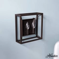 Cypress Grove 1 Light Onyx Bengal Wall Sconce with Clear Holophane Shade Bathroom Light by Hunter