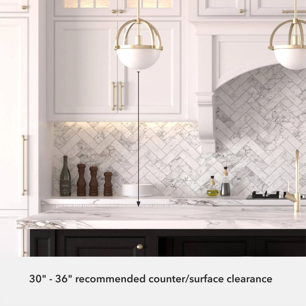 The traditional globe pendant light gets a modern makeover. The 1-light Wedgefield small pendant light is classically proportioned, but we added a twist. The bottom half features cased white glass that beautifully diffuses light while the top half is open and uses decorative arms to artfully embrace the negative space. The result is stately yet simply lovely.