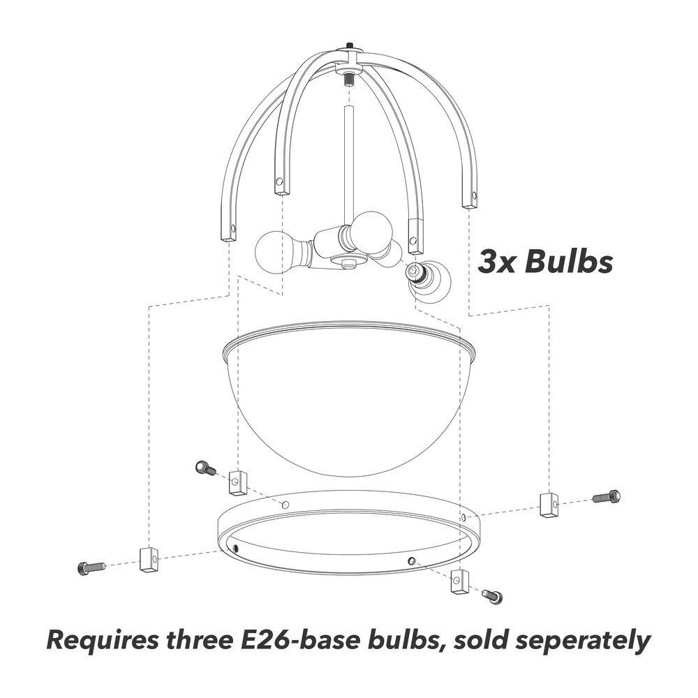 - Required bulbs: uses three E26-base light bulb(s), each at 60-Watt maximum or the LED equivalent (bulbs not included)